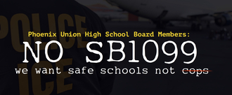 Phoenix Might Pay More for Police in Schools than Teachers, Sign to Stop ItWe are urging you to take a position against SB1099, a terrible anti-youth legislative proposal that is currently being considered by the Arizona State Legislature. Bill SB1099, the School Safety Program Bill, directs the Arizona Department of Education to prioritize grants for school resource officers (SROs) and juvenile probation officers in schools within communities with “high crime rates.” This will result in more police officers being placed in black/brown schools, which will increase the arrests of Black and Latino students on campus—feeding the school-to-prison pipeline. The past two weeks of Trump’s presidency has shown us that many of the communities represented by our school youth population are at risk of being further discriminated, criminalized and even deported. It is your political and moral responsibility as a school board to ensure that the students you service are safe instead of making school environments more hostile by heightened police presence. Currently we have a crisis in education. In 2016, our state systematically chose to cut education by $21 million while allocating $17 million for a project to increase beds at Eloy private detention center. A safe school is a school that has enough teachers, enough books, school programs like art, music, and other character building activities that will create whole and healthy adults which in turn creates safe communities. A safe school cannot be defined by over-policing. Phoenix Union High School District does not need police officers. Advocating for more SRO's on campuses is the wrong answer to solving disciplinary issues with young people that need intervention based on love and guidance. We must go beyond solutions that are about police. Studies have shown that even accounting for all other variables, that the mere placement of an SRO on campus increases the arrests made on that campus five times more probable. Sign this petition, and say YES to safe schools that promote creativity and so NO to incarceration.289 of 300 SignaturesCreated by Puente A.